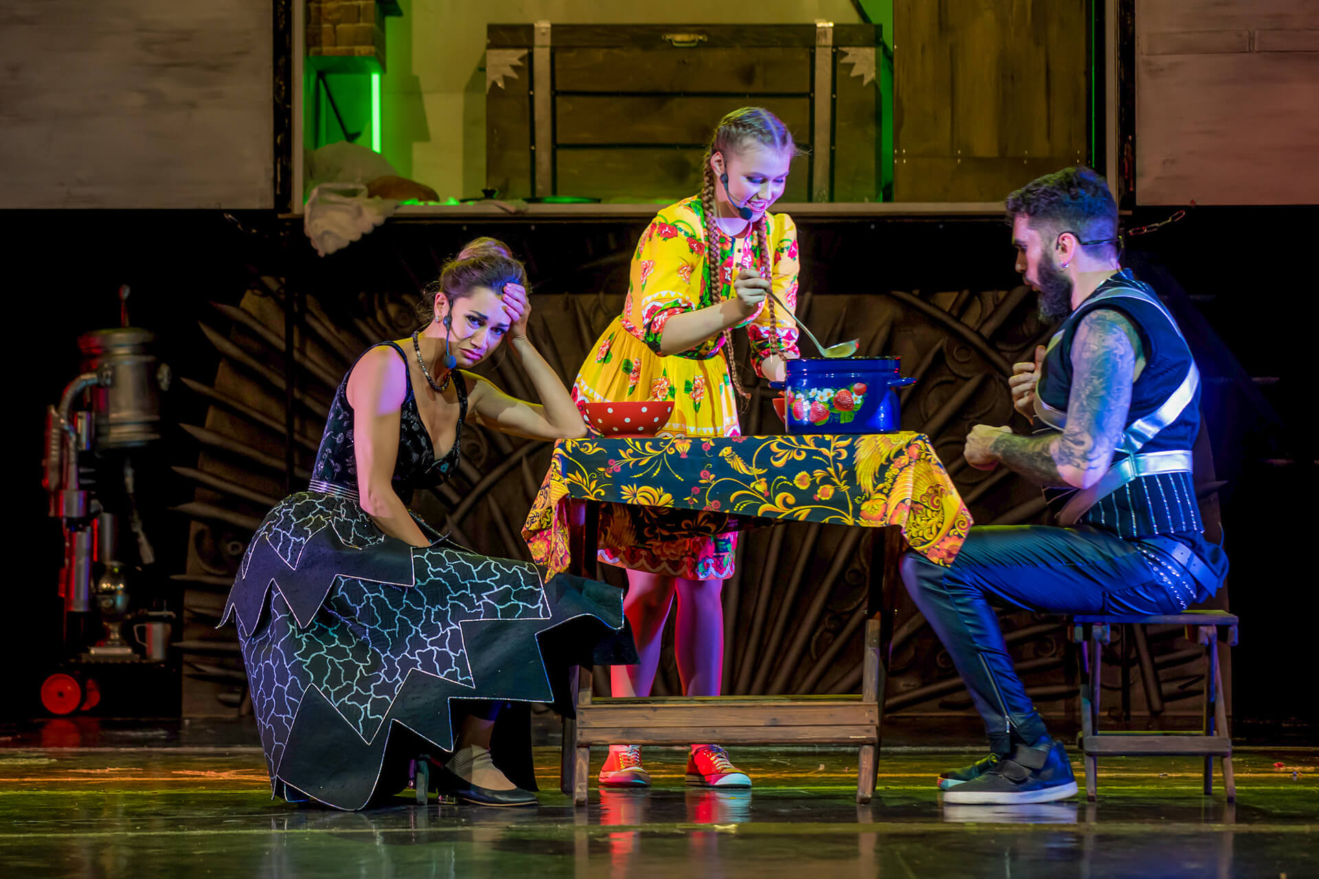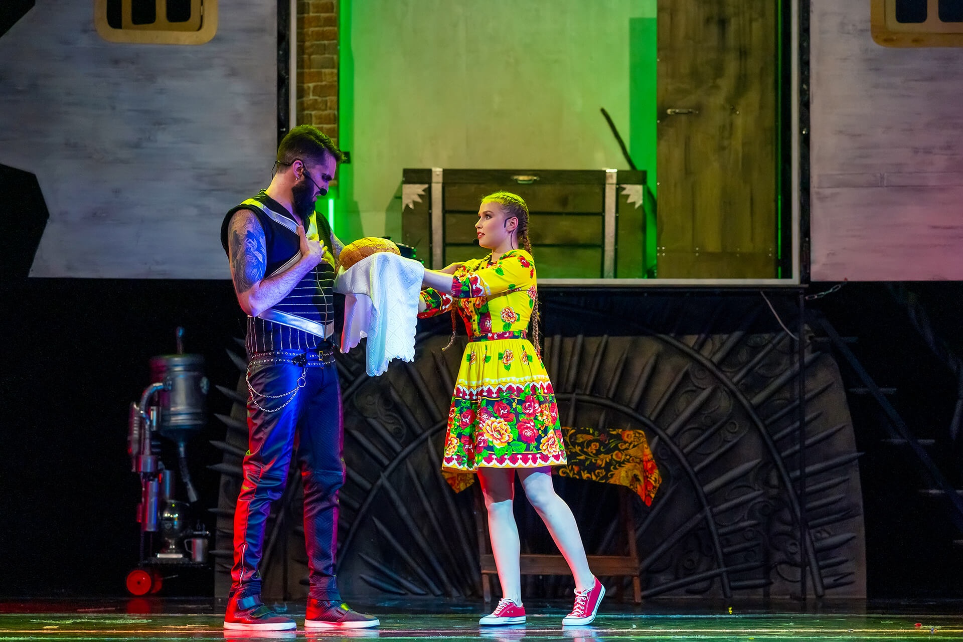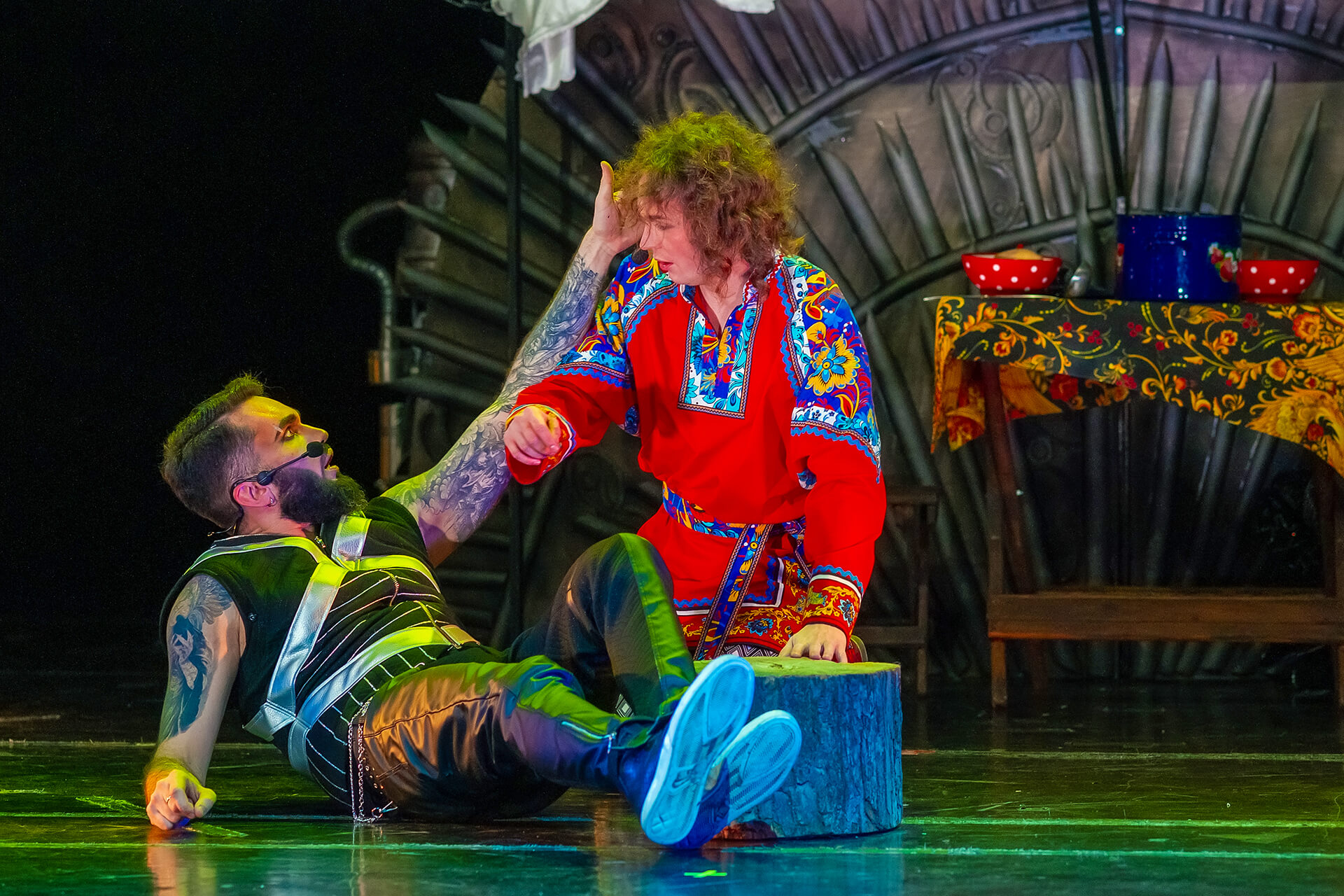Цыганочка на заморском, Ступа на электрозаряде, Изба со встроенной системой умного дома, Яга на ЗОЖе и в 300 лет даст фору любой малолетке, Кощей владеет приёмом Гроулинга и обожает татухи, Иван-богатырь зажигает шлем, телефоны в зале и сердца девчонок, Василиса — легко отдавит ногу куриной ноге, споёт так, что в избе затрясутся стены и решит все скопившиеся за 300 лет любовные вопросы между эгоистом-абьюзером Кощеем и, вследствие этого, нервно-истеричной и неуверенной в себе Ягой.