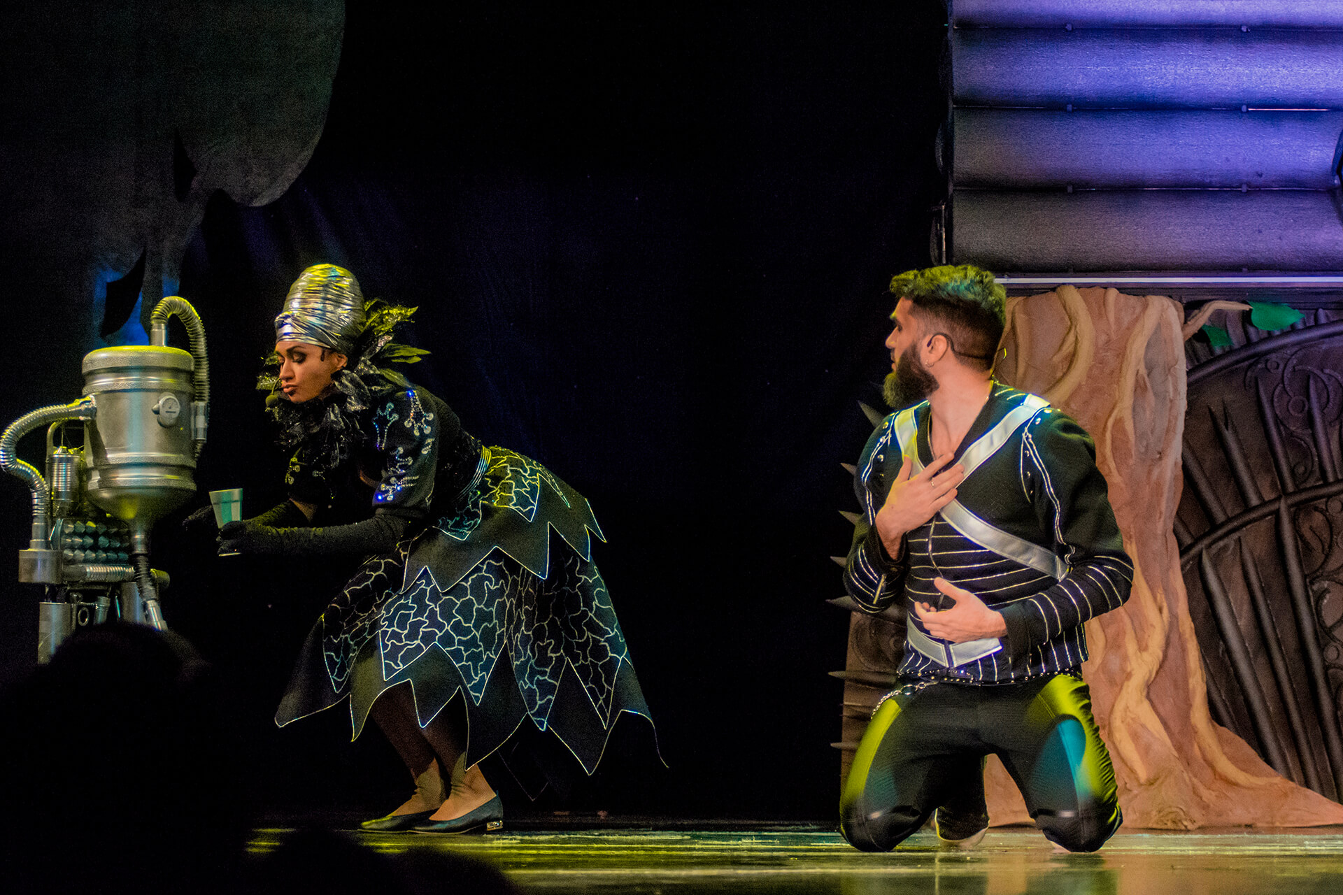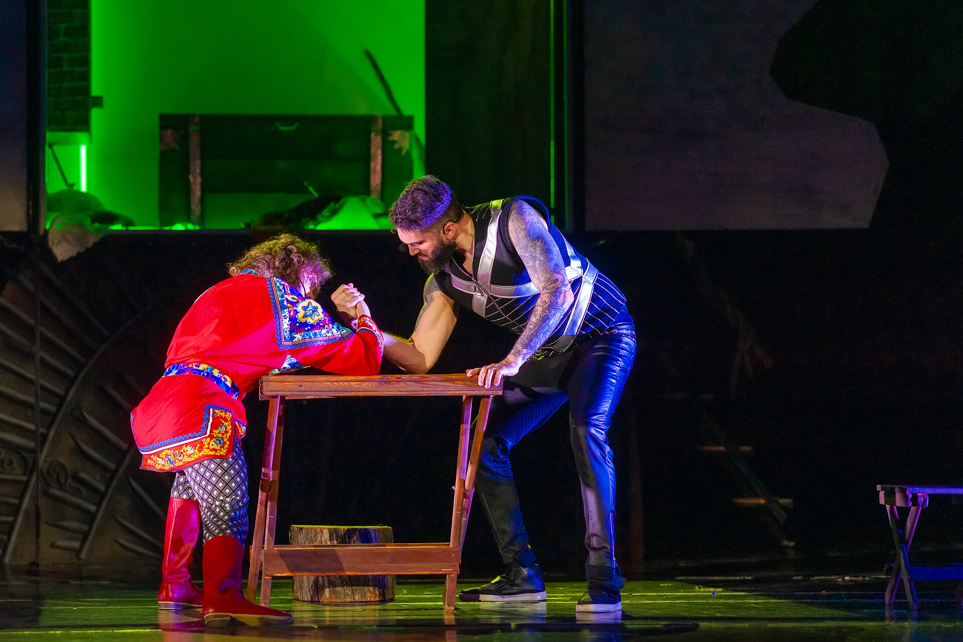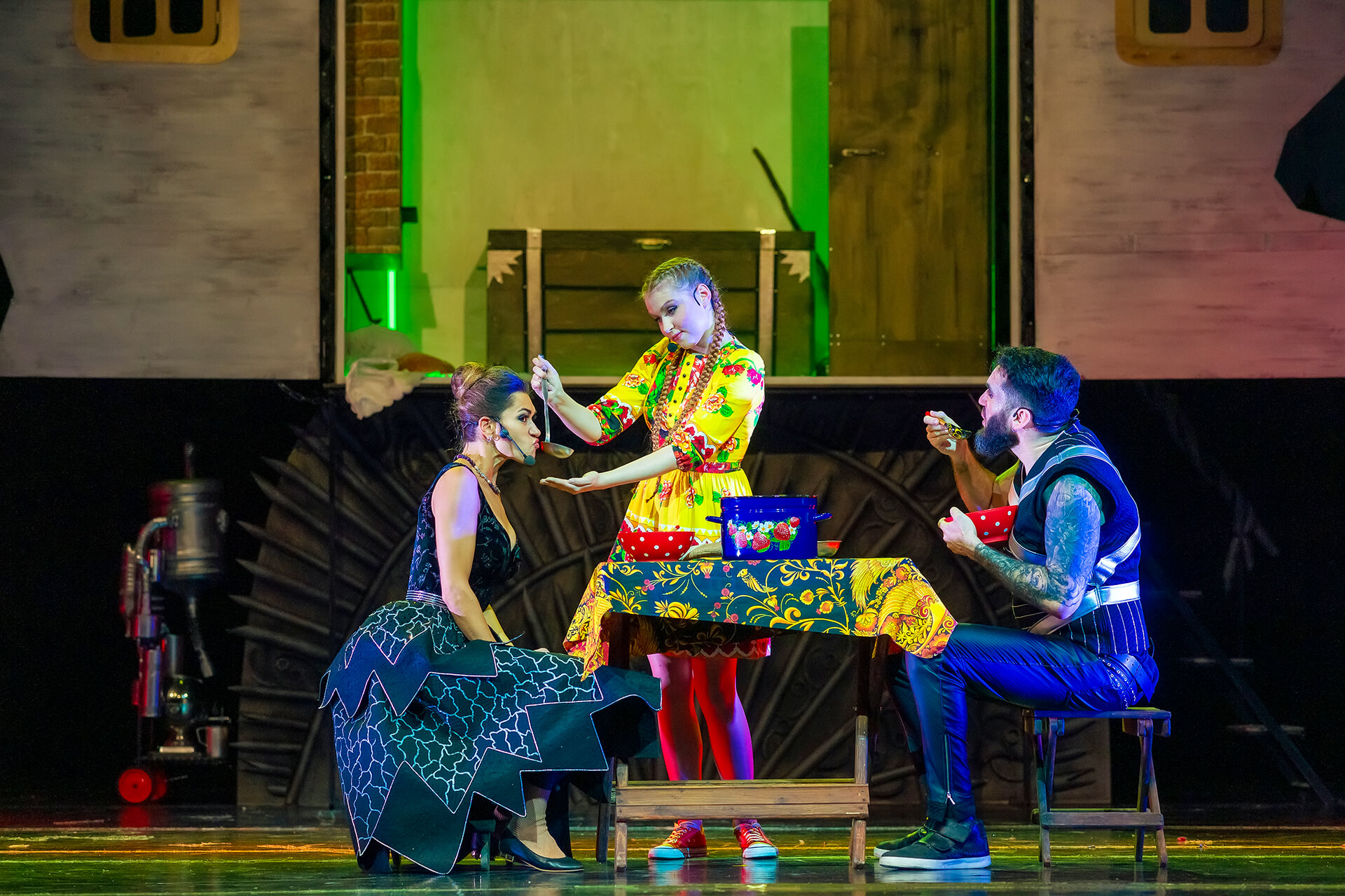 Цыганочка на заморском, Ступа на электрозаряде, Изба со встроенной системой умного дома, Яга на ЗОЖе и в 300 лет даст фору любой малолетке, Кощей владеет приёмом Гроулинга и обожает татухи, Иван-богатырь зажигает шлем, телефоны в зале и сердца девчонок, Василиса — легко отдавит ногу куриной ноге, споёт так, что в избе затрясутся стены и решит все скопившиеся за 300 лет любовные вопросы между эгоистом-абьюзером Кощеем и, вследствие этого, нервно-истеричной и неуверенной в себе Ягой.